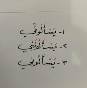 Apabila Nun tanda rafaโ Afโal Khamsah (ุฃูููุนูุงู ุฎูู ูุณูุฉ) bertembung dengan Nun Wiqayah (ูููู ููููุงููุฉู) seperti ููุณูุฃููููููููู, maka tiga perkara yang kita boleh lakukan terhadap Nun