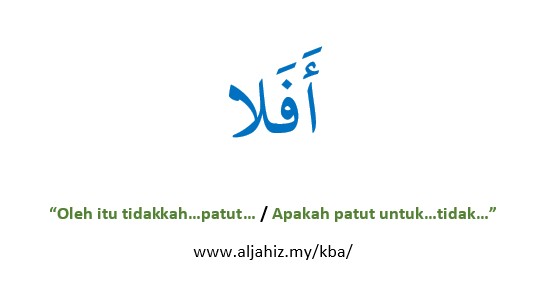 1. Ungkapan [ ุฃูููููุง ] terbentuk daripada gabungan ููู ูุฒุฉ ุงูุงุณุชููุงู ููุฅููุงุฑ (pertanyaan bertujuan menidakkan), huruf ุงููุงุก ุงูุนูุงุทููุฉ dan ููุง ุงููุงููุฉ (tidak). Makna literalnya ialah โ๐๐ญ๐ฆ๐ฉ ๐ช๐ต๐ถ ๐ต๐ช๐ฅ๐ข๐ฌ๐ฌ๐ข๐ฉโฆ๐ฑ๐ข๐ต๐ถ๐ตโฆ/ ๐๐ฑ๐ข๐ฌ๐ข๐ฉ ๐ฑ๐ข๐ต๐ถ๐ต ๐ถ๐ฏ๐ต๐ถ๐ฌโฆ๐ต๐ช๐ฅ๐ข๐ฌโฆโ. Contohnya ุฃูููููุง ุชูุชููููููุฑููููย โ๐๐ญ๐ฆ๐ฉ ๐ช๐ต๐ถ ๐ต๐ช๐ฅ๐ข๐ฌ๐ฌ๐ข๐ฉ ๐ฌ๐ข๐ฎ๐ถ ๐ฑ๐ข๐ต๐ถ๐ต ๐ฃ๐ฆ๐ณ๐ง๐ช๐ฌ๐ช๐ณ? / ๐๐ฑ๐ข๐ฌ๐ข๐ฉ ๐ฑ๐ข๐ต๐ถ๐ต ๐ถ๐ฏ๐ต๐ถ๐ฌ ๐ฌ๐ข๐ฎ๐ถ ๐ต๐ช๐ฅ๐ข๐ฌ ๐ฃ๐ฆ๐ณ๐ง๐ช๐ฌ๐ช๐ณ?โ. Soalan โ๐ต๐ช๐ฅ๐ข๐ฌ๐ฌ๐ข๐ฉโฆ๐ฑ๐ข๐ต๐ถ๐ตโฆ / ๐๐ฑ๐ข๐ฌ๐ข๐ฉ ๐ฑ๐ข๐ต๐ถ๐ต ๐ถ๐ฏ๐ต๐ถ๐ฌโฆ๐ต๐ช๐ฅ๐ข๐ฌโฆ?!โ ini mengandungi gesaan […]